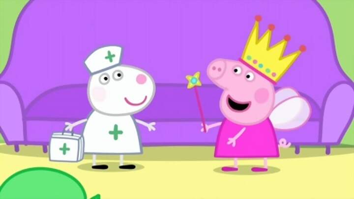 Dr. Hamster is hard at work so Grampy Rabbit, Peppa and George give her a wheel to help her.